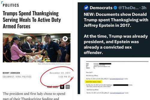 The post has since been deleted, since the Democrats figured out the smoking gun turned out to be an exploding cigar. But the internet is forever, as is evidence of what Trump was doing on Thanksgiving in 2017: