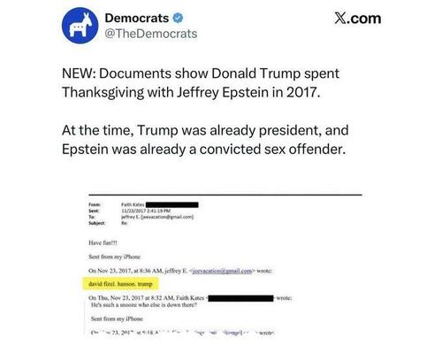 One of the claims – now a deleted X post, the Democratic Party’s official account stated, “NEW: Documents show Donald Trump spent Thanksgiving with Jeffrey Epstein in 2017. At the time, Trump was already president, and Epstein was already a convicted sex offender.”