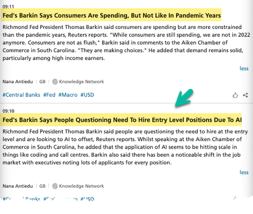 Barkin’s comments come just one day after the Federal Reserve’s Beige Book was released, which appeared rather uneventful at first glance. However, one section deserves attention (read here). Here’s an excerpt from our note yesterday: