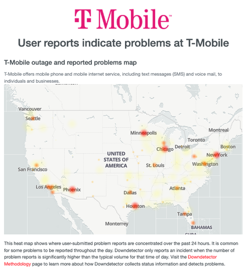 Reports of T-Mobile outages appear widespread as well.