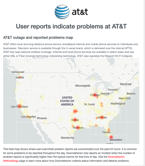 Reports of AT&T outages and disruptions appear more widespread in the central US.