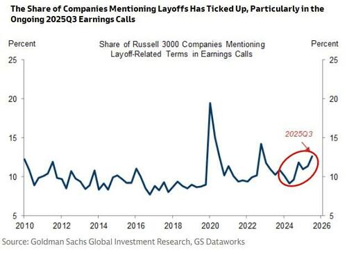 Goldman complements these data with a new tool to track layoff discussions among publicly listed companies based on earnings call transcripts.