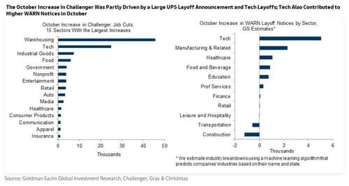 So far, Goldman does not find clear evidence that most of the increase in these layoff measures is directly motivated by AI, although tech industries saw meaningful increases in layoffs in October across both measures.