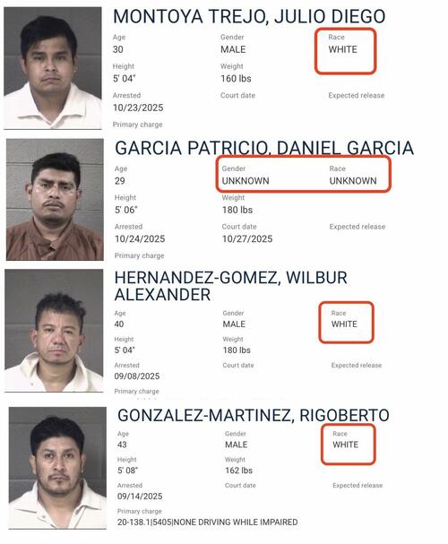 “I searched through thousands of arrests in my county and every single Hispanic individual who has been arrested is labelled as “WHITE”” Van Swol posted on X.