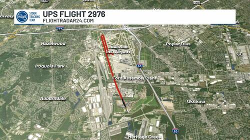 FOOTAGE: Another perspective of the UPS Flight 2976, a McDonnell Douglas MD-11 cargo plane crashing just after takeoff from Louisville International Airport.