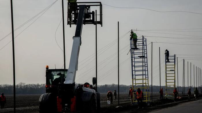 Anti-drone netting is installed on the roads in Druzhkivka, Ukraine, in March 2026. In the U.S., power grid stakeholders say they need additional technology and authorizations to counter the threat drone attacks pose to electric reliability. Chris McGrath/Getty Images via Getty Images