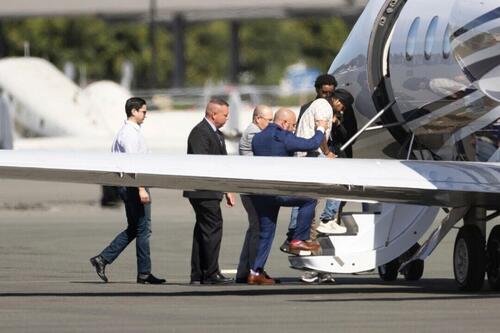 Harjinder Singh is escorted onto an airplane by Florida Lt. Gov. Jay Collins and law enforcement in Stockton, Calif., on Aug. 21, 2025. AP Photo/Benjamin Fanjoy