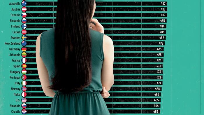 The data for this visualization comes from theย OECDโs PISA 2022 assessment. PISA measures how well students can apply math knowledge to practical problems, offering a global comparison of education systems.
