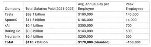 Musk’s companies have paid out a staggering $110.7 billion in salaries over five years—enough to give every person in Los Angeles a $27,000 check. This cash supports over 200,000 workers at peak, from welders building Cybertrucks to coders dreaming up Mars rockets. It’s not just high-flying execs; average pay hovers around $160,000 at Tesla, keeping families housed, kids in school, and local diners buzzing.