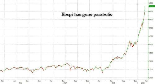 To summarize, while it is still very early, there’s no sense of panic in markets yet. Still, it would be naive to assume that’s a good guide for the full session as we may get larger selloffs as various Asia cash markets open, especially if something happens to the “memory” trade which has pushed the Kospi to an idiotic 50% higher YTD.