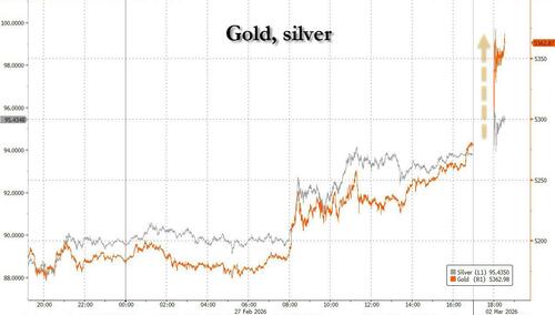 Yes, futures are broadly lower, oil and gold are higher, but there is no panic, and as Bloomberg’s Mark Cudmore writes, most non-energy moves are relatively contained and almost everything has pared back from the opening extremes.