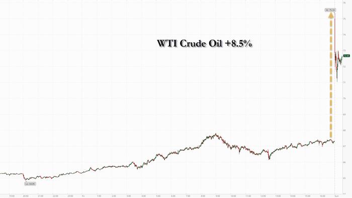 To wit, oil is up 8.5%. but it was up as much as 13% at the start of futures trading, so some profit taking off the bat.