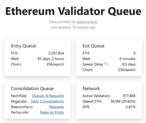 Wait times for the entry queue have now stretched out to 45 days, while exiting ETH is being processed in a matter of minutes.