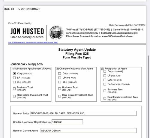 Filings with the Ohio Secretary of State, electronically submitted on October 22, 2018, identify Osman as the company’s agent. He had been appointed Somalia’s UN ambassador in June 2017, creating an overlap of nearly two years between his diplomatic role and his involvement with a U.S. healthcare provider operating within Medicaid-funded systems supported by U.S. taxpayers.