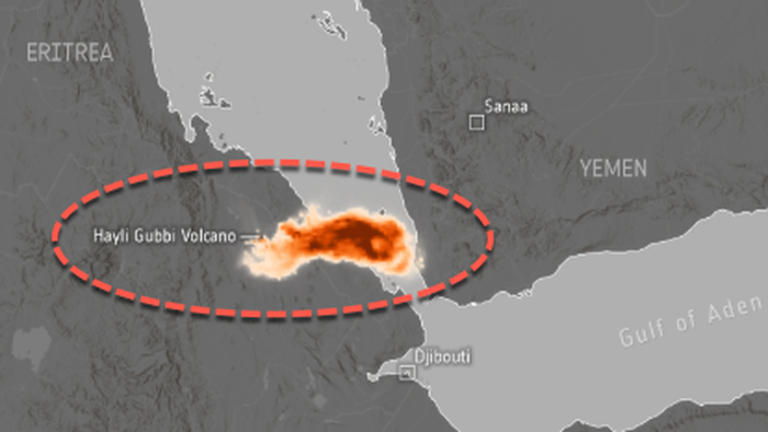 A dormant volcano in Ethiopia’s Afar region, Hayli Gubbi, erupted on Sunday for the first time in thousands of years, blasting ash and smoke up to 9 miles into the atmosphere, disrupting air travel across the Red Sea toward Yemen and Oman.