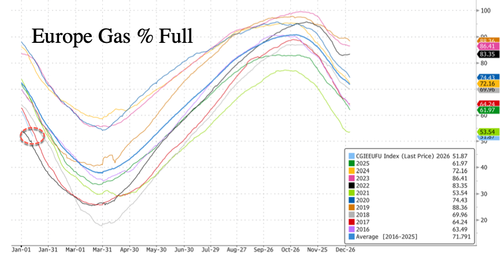 Bloomberg noted, “The rally highlights a deeper structural shift. Europe has lost much of the flexibility it once relied on to absorb supply shocks, leaving storage as one of its few remaining buffers as it procures liquefied natural gas from across the globe.”