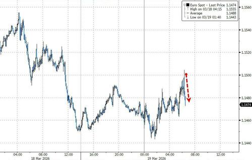 2Y Bund yields are up strongly overnight (spiking on the BoE’s surprisingly hawkish tone). Post-ECB, yields are flat (down then up) as traders expected a little more hawkishness…