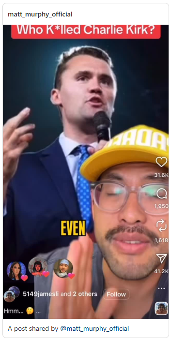In the last 3 months of his life, Charlie woke up to the truth. He questioned October 7th and how it took 24 hours to even begin to help people in a country the size of New Jersey that were being murdered on live stream. The Israeli military was ordered to stand down by their government, Israel needed martyrs and more victims to push their greater Israel campaign and justify their genocide in Gaza. Charlie said without a doubt that Epstein was an Israeli Mossad agent blackmailing American elite and politicians with tapes of them raping children. Charlie called out the genocide Israel is conducting in Gaza and now Syria. Charlie called out the Marxist Zionists [Democratic Party billionaires actually, who are not Marxists but liberal fascists, or as Mussolini termed his fascism, “corporationists” meaning the billionaires, who funded Mussolini] who fund Black Lives Matter [Murphy is referring to liberal fascist billionaires, the ones who fund the Democratic Party], all of the social unrest and radical liberal movements, the vaccine [Kirk’s followers were also anti-vax], and proved they are behind all of the “legal” illegal immigration not just in America but to Europe too [in order to get Europe and U.S. to take in the refugees from the U.S. Government’s regime-change coups and invasions in Afghanistan, Iraq, Libya, Syria, Lebanon, Africa, Honduras, and Ukraine]. Charlie was the most influential man in America for young conservatives and arguably all conservatives. When he woke up to the truth and turned on Israel, conservative America would have turned on Israel with him. Israel [Netanyahu] had to kill him, there was no other option. Our owners can’t have their dogs trying to bite them too. Do not let the clips of Charlie telling the truth die with him, he died for this truth. Spread it everywhere. It’s time for America to realize Israel is not our Aly, they are our greatest enemy and they murdered Charlie in cold blood. An assassination with a statement [a message] to anyone who would follow in his footsteps. Last time I checked it’s not the American way to live in fear, we took down the British empire over taxes, what’s it going to take for us to hold Israel accountable for their crimes against our great nation?