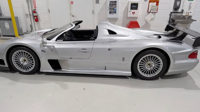 The road-legal “Straßenversion” models were hand-assembled at AMG’s facility in Affalterbach, Germany, in the late 1990s, with a small batch of six roofless roadsters completed from 2002 onward. Under the carbon-fiber skin sits a 6.9-liter V-12 making around 600 horsepower, good for 0–100 km/h in about 3.8 seconds and a top speed of roughly 200 mph.