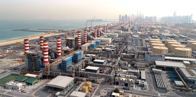 Jebel Ali desalination plant outside Dubai produces 587 million U.S. gallons per day, 10 times larger than the rejected California plant.