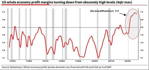 Notably, all this is occurring at a time when the entire economy’s profit margins have peaked and may potentially be turning lower.