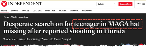 A story is developing out of Marion County, North Central Florida, where a 17-year-old boy named Caden Speight, who was allegedly wearing a “Make America Great Again” hat, went missing Thursday after reportedly being shot and abducted by “Hispanics in a light-colored van,” according to local media.