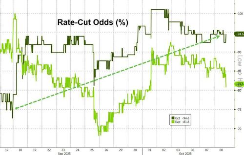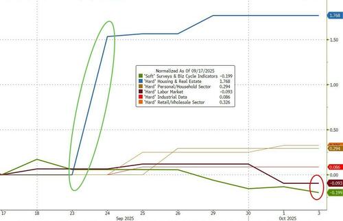 Despite the lack of data (due to the government shutdown), the labor market is cooling, and now policymakers are turning their attention to that side of the mandate (though we note that housing data saw a huge upside surprise while soft survey data since the FOMC meeting has weakened)…