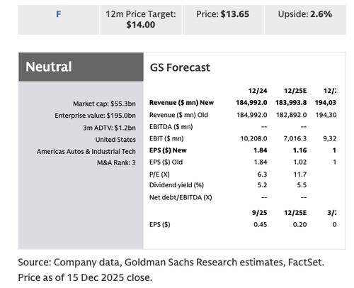 Goldman maintained a Neutral rating on the stock, raised EPS estimates to $1.16, $1.65, and $1.80 for 2025, 2026, and 2027, respectively, and lifted its 12-month price target to $14 from $13, based on an unchanged 8x multiple on normalized EPS.