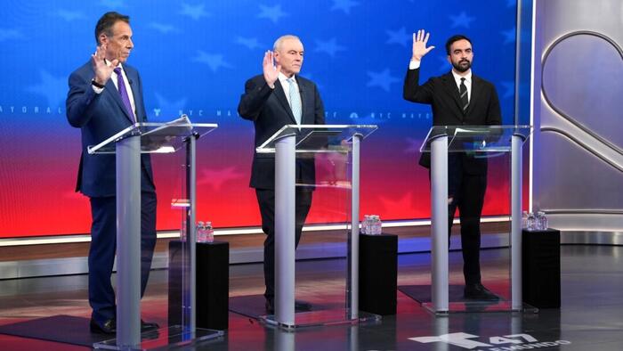 New York City mayoral candidates Democratic nominee Zohran Mamdani, his primary opponent Andrew Cuomo, and Republican nominee Curtis Sliwa squared off on Oct. 16 in a bid for the seat that current Mayor Eric Adams is vacating in 2026.