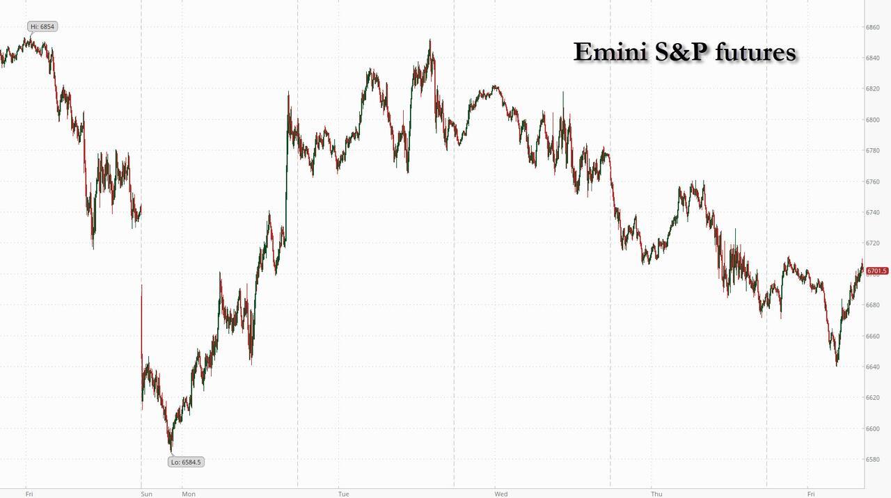 US stock futures rebounded from their overnight selloff, and were trading near session highs after three days of losses on Wall Street as Brent slipped below $100 a barrel and investors waited to see if the war in the Middle East would escalate further. The catalyst for the bounce was news that India asked Iran to allow its tanker armada through Hormuz, which would lead to a substantial easing of the global oil shipping blockade. And while it remains to be seen if this will pave the way for other flows through the strait, for now futures have rebounded with Emini S&P futures up 0.3% at 6700 and Nasdaq futures rising 0.4%; in premarket trading Mag 7 stocks are flattish except for the -1.4% decline in META after it delayed the rollout of its new frontier model “Avocado.” Bond yields reverse an earlier rise and were flat higher this morning while the USD is 0.4% higher, with DXY now reaching above 100. Oil prices drop overnight with WTI trading around $93 after India stated it has an oil tanker moving out of the Strait of Hormuz. Other commodities are mixed: Aluminum added 1.7%, Silver fell -1.0% this morning. US economic data slate includes January personal income/spending, PCE price index, durable goods orders, 4Q second GDP estimate (8:30am), March University of Michigan sentiment, January JOLTS job openings (10am).