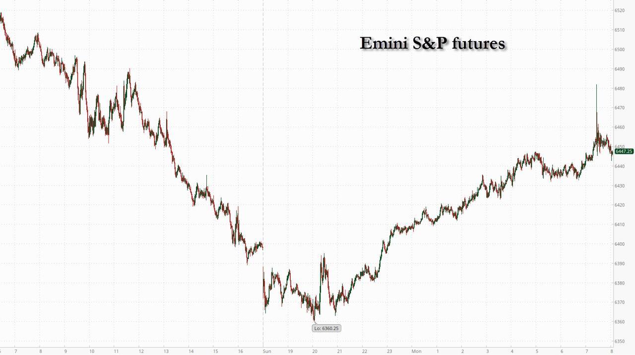 Futures are higher despite continued Iran war escalation which pushed Brent higher by around 2% after Iran-backed Houthi militants in Yemen joining the war on Iran’s said, bouncing from overnight lows which may be driven by positioning, but also by a major shift in the regime with oil now rising instead of falling on higher oil prices as the market pivots to price in not inflation but recession (and look at the spike in gold/bitcoin this morning as the next stimmy starts getting priced in). As of 8:00am ET, S&P futures are at session highs, rising 0.6% after the benchmark slumped to an August low at the end of last week, and reversing an early overnight loss; Nasdaq futures rise 0.7% with all Mag7 names higher premarket, boosting Semis, as Cyclicals (incl Energy) are leading Defensives ex-healthcare. The moves in Energy and healthcare are also breaking recent trends suggesting investors may be shifting portfolios to cash flow heavy names as they consider oil prices remaining elevated for longer.  The most notable move overnight is that after weeks of rising, US yields fell across the curve after money markets cut the odds of a Federal Reserve rate hike in 2026 to about 20%, from around 35% on Friday. The rate on two-year Treasuries dropped five basis points to 3.87% while 10Y yields are down 7bps to 4.36% The dollar was little changed. Commodities are stronger as WTI moves above $100/bbl. Gold/precious and bitcoin are all higher despite USD strength, breaking the recent trend, as they start pricing in the looming stimulus to offset the next recession. Today’s US economic data calendar includes the March Dallas Fed manufacturing activity at 10:30am. Ahead this week are consumer confidence, JOLTS job openings, retail sales, ISM manufacturing and – in an abbreviated session on Friday – March jobs report