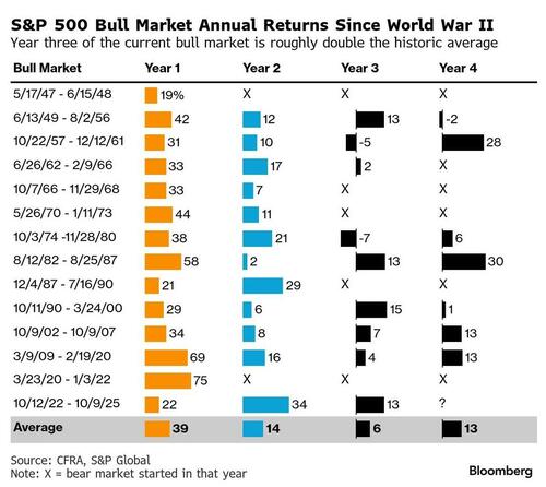 Still, there’s plenty to keep traders tense, with Morgan Stanley’s Mike Wilson said that a bear-case scenario could see the S&P 500 sink as much as 11% if trade tensions between the US and China aren’t resolved before a November deadline. Deutsche Bank strategists said overall equity positioning is moderately overweight but not stretched, and markets could follow a scenario from 2021 when stocks suffered a modest pull back before resuming a strong, steady rally.