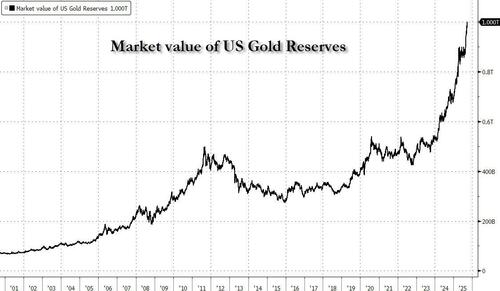 Gold hit yet another record, topping $3,820 and pushing the market value of US gold reserves above $1 trillion, while the dollar tumbles as clock ticks toward US shutdown deadline.
