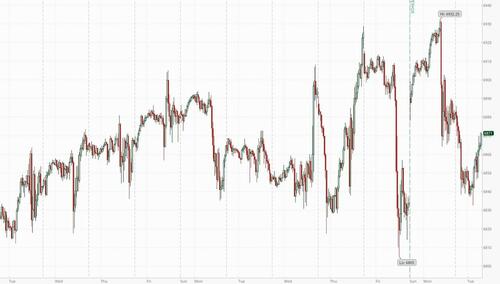 Stock futures are lower, but well off session lows, as traders await delayed jobs data that will shape the Fed’s next move. As of 7:15am, S&P 500 futures are 0.2% lower while Nasdaq 100 contracts are -0.3% with all Mag 7 names lower premarket; European equities are little changed.Treasuries are lower, pushing 10Y yields up 0.5bps to 4.175%. The Bloomberg dollar index is at session lows. Brent crude dropped 1.6% below $60 a barrel for the first time since May and gold pulled back after five days of gains. Bitcoin sank more than 1% before recovering above $87,000. The non-farm payrolls report, due at 8:30 a.m., will include more uncertainty and quirks than usual. Consensus among economists for November is at 50k, while the whisper number is 22k. On today’ calendar, Non-farm payrolls, average hourly earnings and the unemployment rate for November are due at 8:30 a.m. ET. We also get the October retail sales data at that time. December US PMIs for the manufacturing and services industries are due at 9:45 a.m.