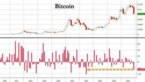 Bitcoin is now down 35% from its October highs, with the November drop wiping out a quarter of bitcoin’s value, and is on pace for the worst monthly drop since the June 2022 Crypto collapse.