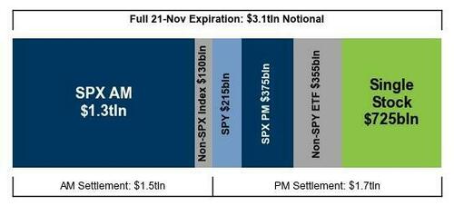 Thursday’s dramatic reversal in equities failed to deliver the “all clear” for risk that traders sought, instead sending them for cover against further losses, said Goldman partner John Flood. Today’s November options expiry, including $1.7 trillion of S&P 500 options and $725 billion notional of single stock options, has the potential to fuel erratic moves in the index.