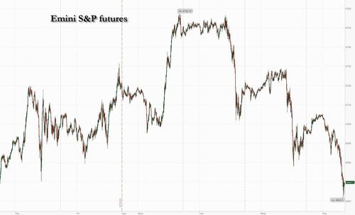 In premarket trading, Mag 7 stocks are lower (Amazon -0.1%, Microsoft little changed, Apple -0.1%, Tesla -0.5%, Nvidia -0.5%, Meta Platforms -0.6%, Alphabet -0.8%). Cipher Mining (CIFR) rises 9% as Google will receive warrants to buy about 24 million shares of the company’s stock as part of Cipher’s 10-year AI hosting agreement with Fluidstack.