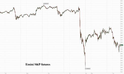 In other assets, cryptocurrencies continued to lose ground after a historic round of liquidations that triggered a sharp selloff over the weekend, with Bitcoin slumping as much as 3.7%. Oil fell after the IEA raised its estimate for a record oversupply.