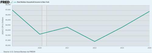 There are many ways to represent the impact on income but consider what has happened in the world center of markets for a century, New York City. What we see is a picture of massive disruption over five years, to the point of absolute calamity. Real median household income is lower now than five years ago. Many businesses were driven out or died completely. Some of the most productive residents left.