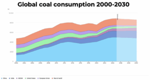 China consumes more coal than the rest of the world combined to fuel its industrial base and provide energy for its residents. China has more coal power plants than the entire electric generating fleet of the United States from all sources, and is still building state-of-the-art coal plants with little regulation affecting their cost. India is the main source of net coal demand growth through 2030, due to growth in electricity demand, cement, steel, and coal-based industrial processes. Coal generates over 74% of India’s electricity, having increased 3.5% in FY25. India’s Ministry of Coal has set a target to increase domestic coal production by 42% over the next five years. Southeast Asia has the fastest growth rate, led by new coal power and metals processing. Asian coal demand combined has offset most declines in coal demand in advanced economies.