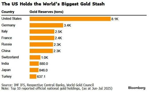 While Treasury Secretary Bessent initially dismissed the suggestion, a trillion dollars here and a trillion dollars there adds up and it would be by no means unprecedented. As Bloomberg reports, Germany, Italy and South Africa all have taken the decision to revalue their reserves in recent decades, as an August note from an economist at the Federal Reserve discussed.
