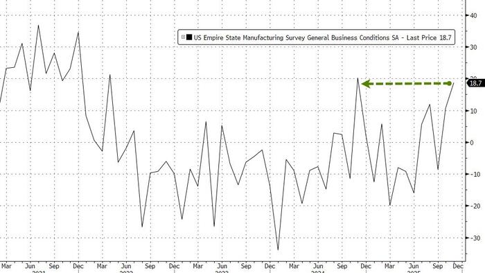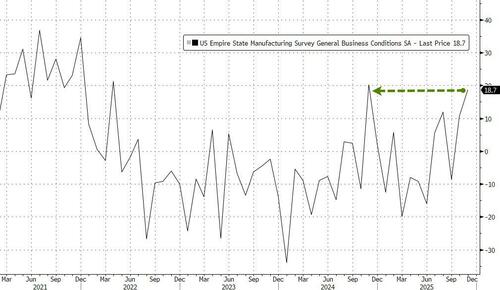 Today, we saw yet another soft survey data point beat expectations as the NY Fed’s ‘Empire State Manufacturing Survey’ surged to +18.7 from +10.7 and smashing expectations of a +5.8 print…