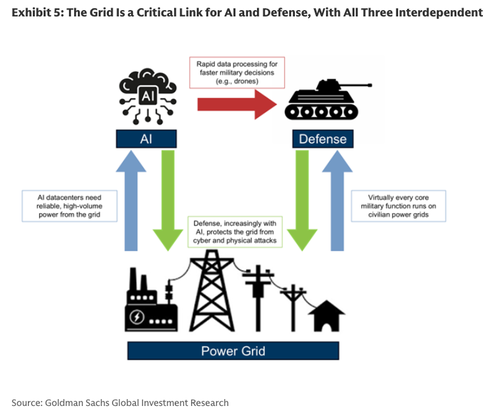 The analysts argue that power grids are the most “critical link” for AI and defense, with all three intertwined, making the grid a national security priority.