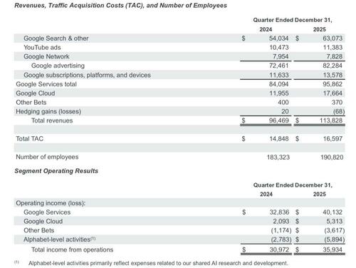 Here, attention immediately goes to the disappointing operating income, however, it is worth noting that consolidated operating income increased 16% and operating margin was 31.6%, both missing estimates, because operating income included a $2.1 billion employee compensation charge for Waymo. Excluding this one-time item, both would have beat expectations.