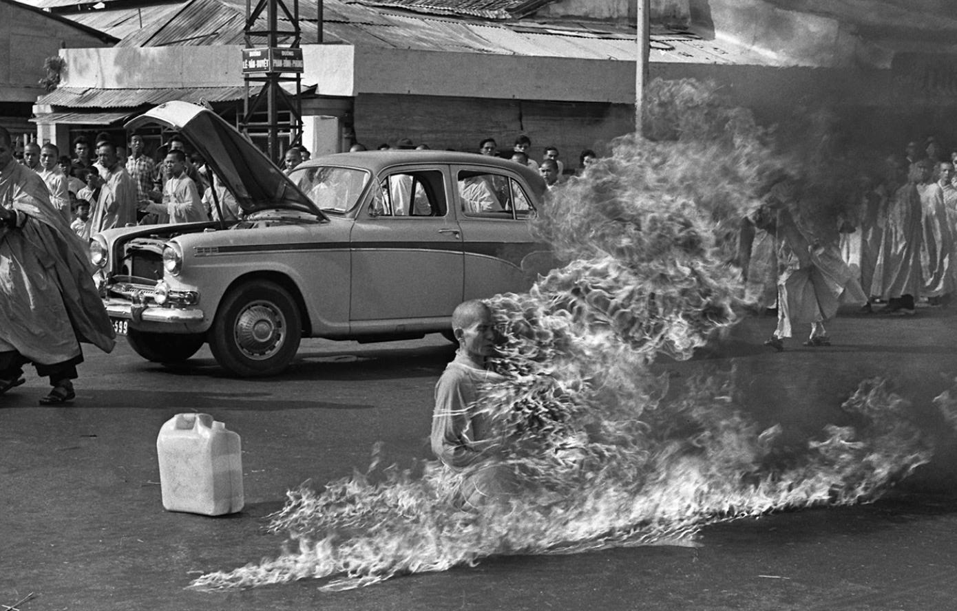 The New York Times journalist who witnessed the act said: “I was too shocked to cry, too confused to take notes or ask questions, too bewildered to even think. As he burned he never moved a muscle, never uttered a sound, his outward composure in sharp contrast to the wailing people around him.”