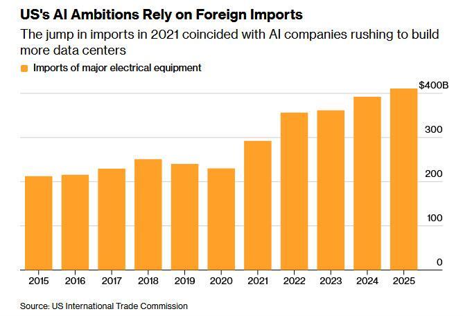 Here Bloomberg again quotes the Sightline data, noting that “almost half of the US data centers planned for this year are expected to be delayed or canceled” and as one big reason for the delay Bloomberg cites the shortage of electrical equipment, such as transformers, switchgear and batteries: “They are needed not just for powering AI, but also for building out the grid that is seeing increased consumption from electric cars and heat pumps. US manufacturing capacity for these devices cannot keep up with demand, and the scarcity has caused data center builders to rely on imports.”