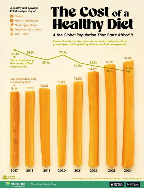 This graphic, via Visual Capitalist’s Niccolo Conte, highlights how these competing forces have shaped the global cost of eating well—and who is still being left behind.