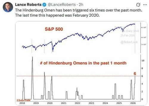 The Hindenburg Omen has sent 6 alarms over the last month.