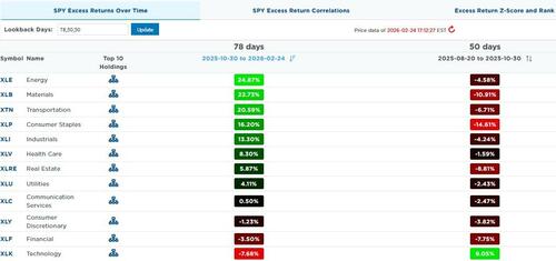 The first column shows each sector’s excess returns (vs. the S&P 500) since the Hindenburg Omen on October 29th.