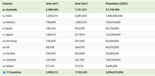 Australia ranks 54th by population, 14th by gross domestic product…and sixth by size?